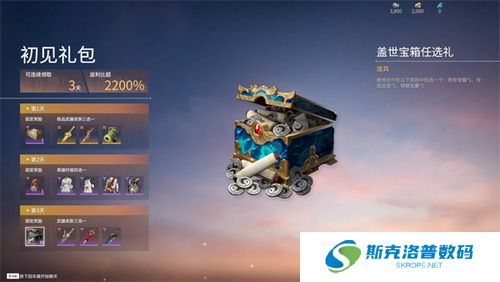 1、初见礼包售价12元,能够连续三天领取极品皮肤和各种道具。2、第一天可以自选三个武器极品皮肤,推荐选择长枪或长剑金皮,火炮金皮可以放弃。