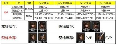 四、火枪手:初期不建议培养,后期资源充足时,并且抽到SS时,再来培养。1、转职优先级:火枪手→巡林客→游侠→大游侠→狂野游侠→巨龙猎人。2、转职第二级:火枪手→巡林客→游侠→大游侠→狂野游侠→传奇猎人。