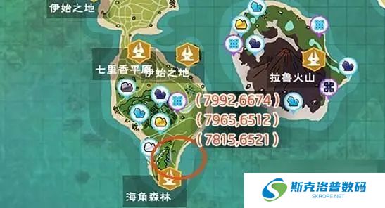 毒蘑菇分布较为零散,在海角森林上方有三个。
