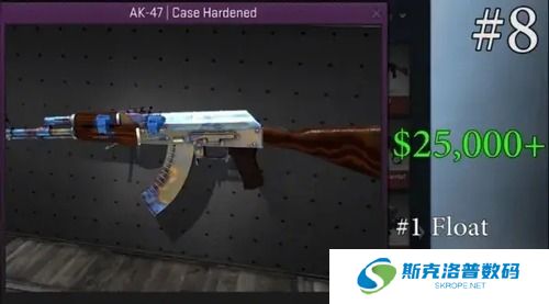 排在第九的是一把略有磨损的暗金爪子刀,爪子刀是所有皮肤刀中最贵的,其拉风的出刀和监视动作一直受到玩家们的追捧。不过这把刀能值2.25万美刀,可不光光是因为暗金和磨损属性,主要还是因为它的刀身95%都是蓝色,这种颜色可是万中无一的极品。TOP8:双泰坦贴纸淬火AK估价两万五千美元(约合人名币:十七万左右)