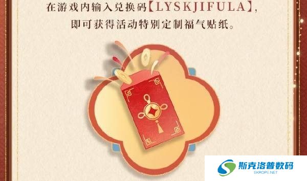 输入兑换码,领取新春专属福气贴纸,定格你的新春喜悦!