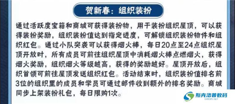 活动方面,众多新春主题活动即将来袭,参与新春主题活动可以获得新春兑换币,
