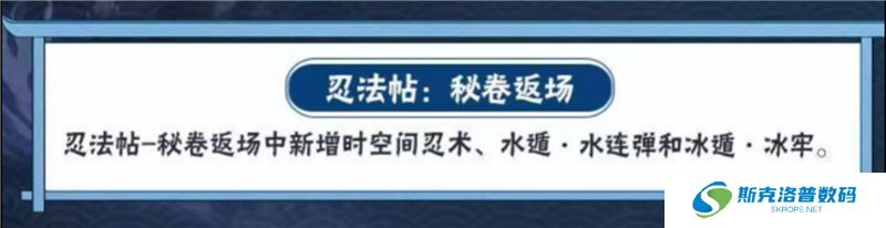 忍法帖密卷返场中,即将新增时空间忍术、水遁·水连弹和冰盾·冰牢。