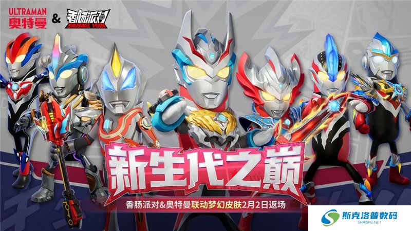 香肠派对与奥特曼进行合作,推出限定皮肤、道具等奖励的活动。
