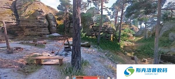 3、以篝火作为参照点,搜索附近的岩石堆。
