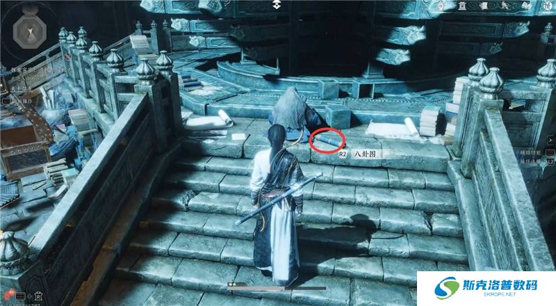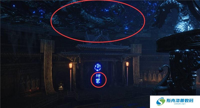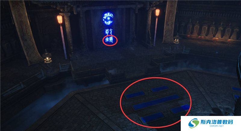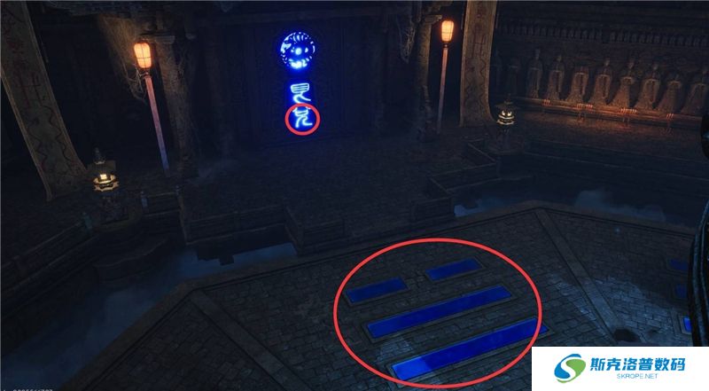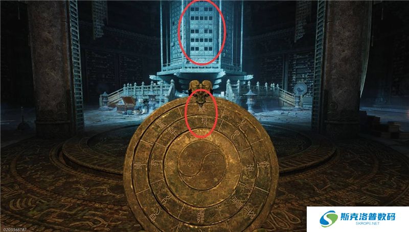 4. 乘电梯下来后,玩家会在尸体旁看到八卦图,根据面前柱子上的符号找到对应的八卦,旋转八卦台开启第一道门。