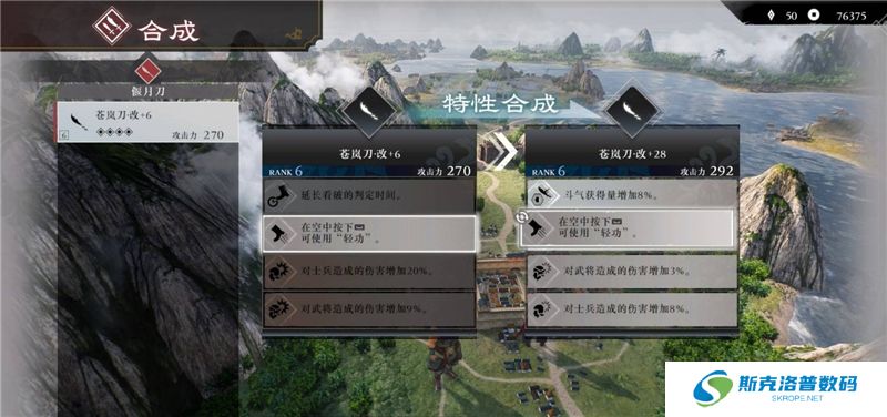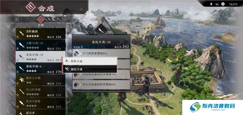 真三国无双起源中的武器合成系统包括特性合成和强化合成两种方式。