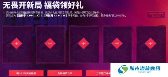 活动时间为1月16日至2月28日,玩家每天完成指定任务后将获得一个福袋,输入正确的口令后可以兑换福袋中的奖励。