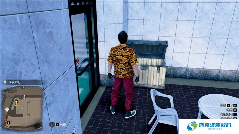 玩家需要跟随剧情推进至第二章解锁自由探索,前往下图所示位置开启银色保险箱即可获得真岛吾朗的女装装扮。
