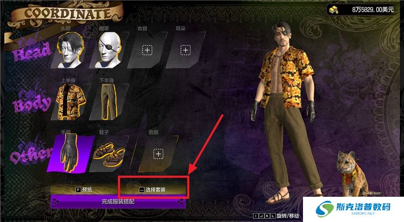 然后点击左下方的【选择套装】,即可更换吾郎美套装。