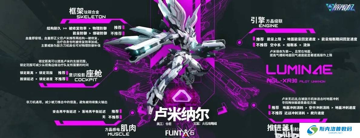 卢米纳尔是解限机中唯一的两个辅助机甲之一,具有极高的机动性和能量恢复能力。