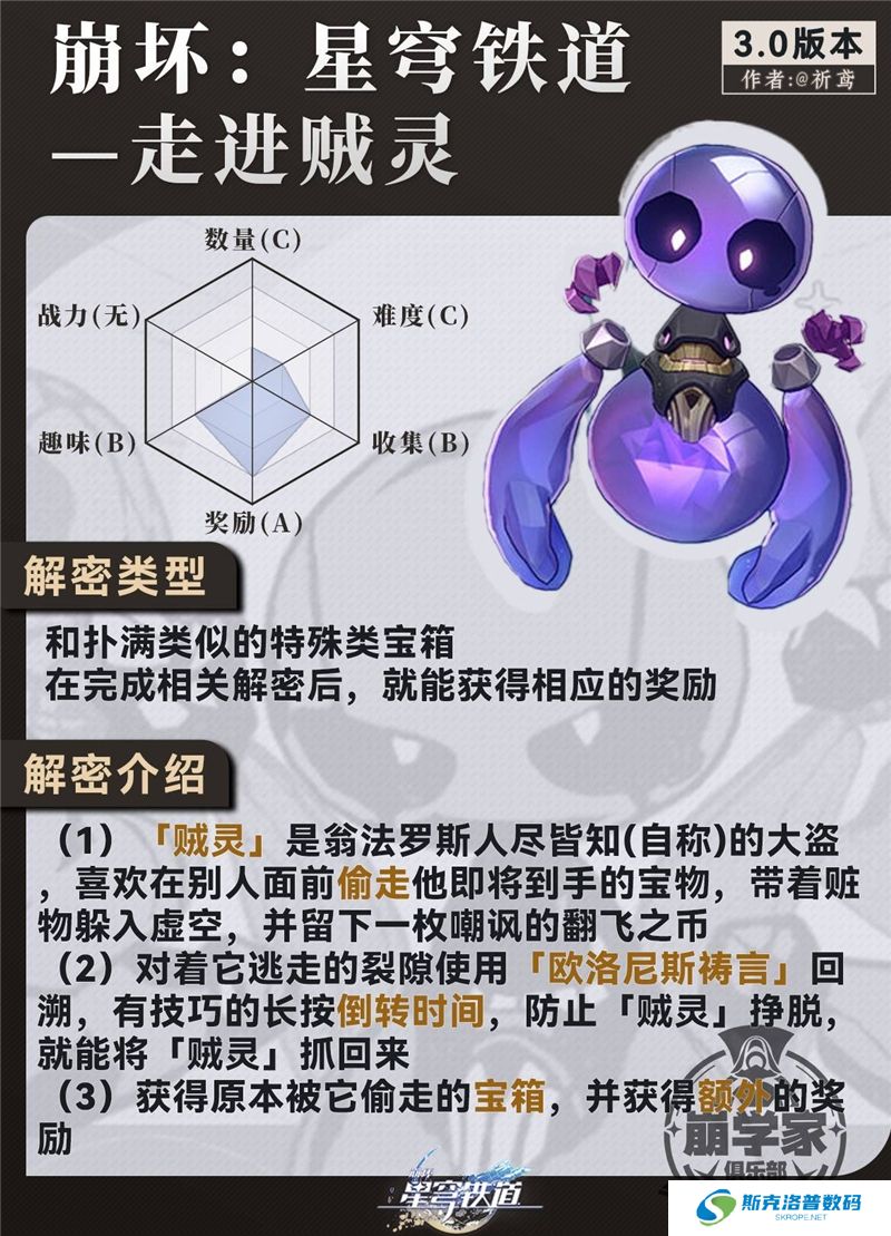 崩坏星穹铁道中的贼灵是一种3.0版本新增的解谜玩法。贼灵是一种特殊的宝箱解谜玩法,玩家在完成相关解密后,可以获得相应的奖励。