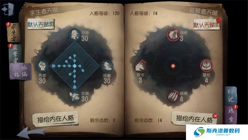 这里就是天赋的界面了,左边是求生者的,右边是监管者的,这里我们以求生者为例,点左下的描绘内在人格