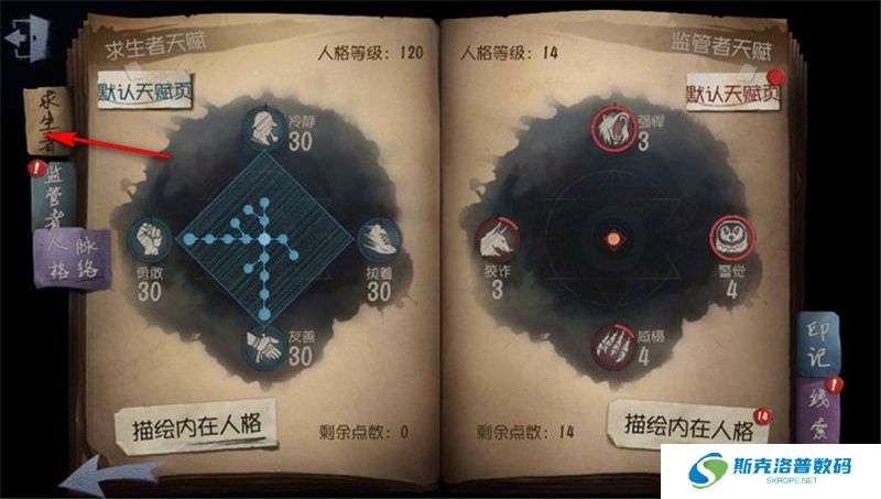 然后回到天赋页面,如上图所示点左边的求生者