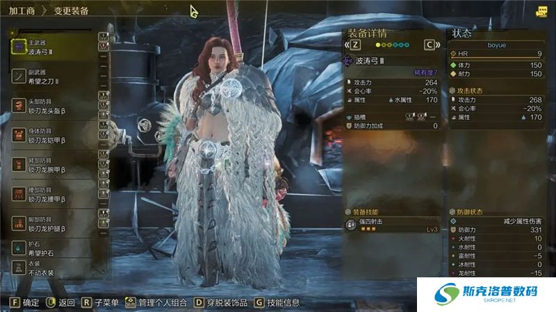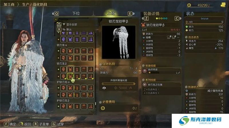 防具:完全根据怪物素材来划分的,并且没有职业限制,不同在于造型与属性倾向,例如有的装备火耐高,而龙耐却低,这种就适合穿着去打火属性非龙boss了。