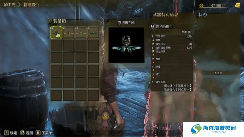 武器虫棍专用的,颇有宝可梦的感觉,在npc处可以购买和培养猎虫,材料是各种采集素材和怪物掉落素材,有准备主玩虫棍的需要努力跑图采集了,当然,也可以让npc帮忙采集,就是需要时间。