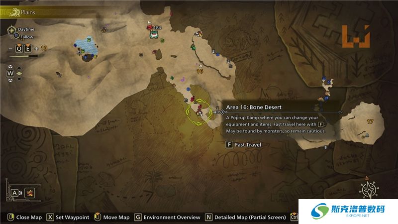 推荐选择骨沙漠,因为它地势较为隐蔽,并且靠近煌雷龙的巢穴,适合反复挑战该怪物的猎人。不过,由于该区域经常发生激烈战斗,因此你可能需要经常修复营地。