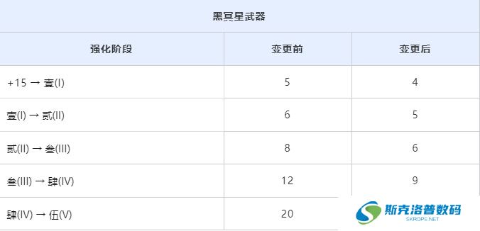 在2025年3月20日(星期四)的更新后,黑冥星武器强化所需的阿戈里斯精髓数值将进行调整。具体调整如下: