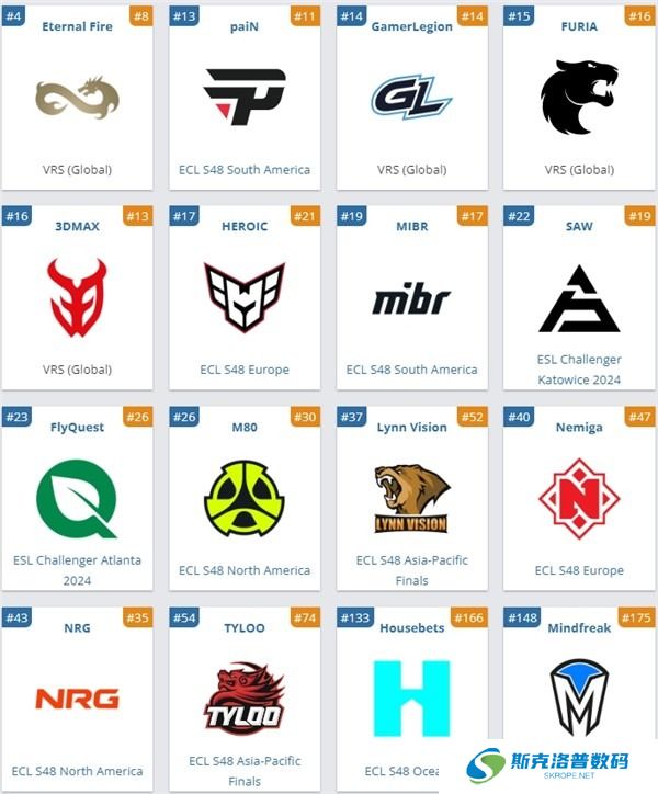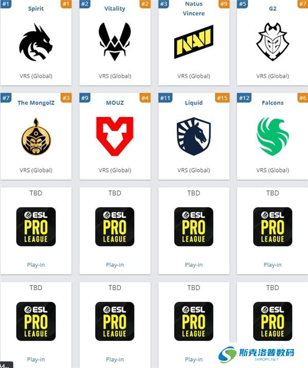 参赛队伍包括Spirit、Vitality、TheMongolZ、MOUZ、Falcons、G2、Natus Vincere(NAVI)、Liquid等知名战队。