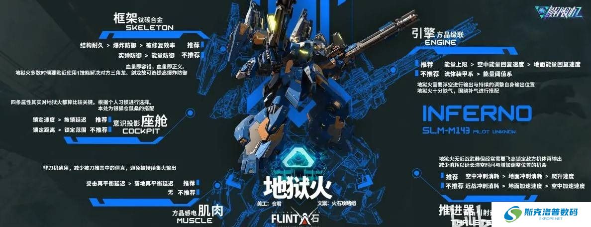 地狱火机甲的核心配件应围绕补气进行搭配,因为地狱火十分缺气,所以配件选择应重点提高气量补充能力。