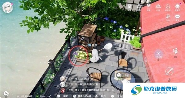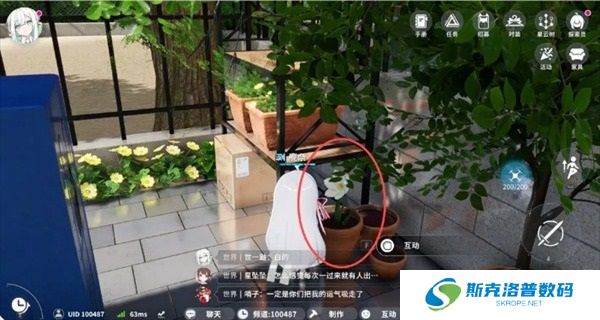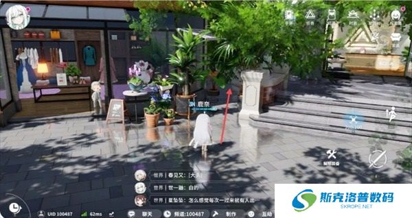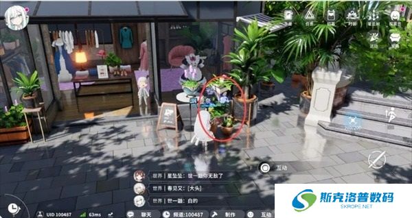出来之后,朝着服装店方向走,可以看到门前的花类点位