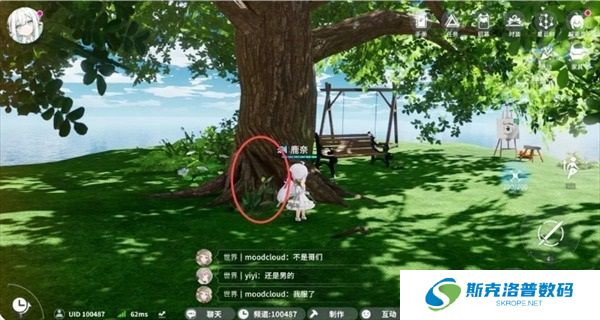 继续向上走,可以看见大树、画板、秋千,在这些设施周围总共有两处虫类刷新点和一处木材类刷新点