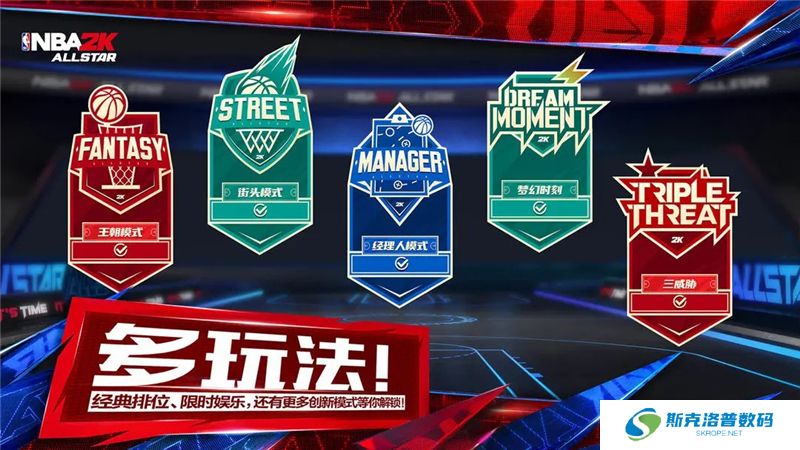《美职篮全明星》游戏包含多种模式,如王朝模式、街头模式、单挑和经理模式等。