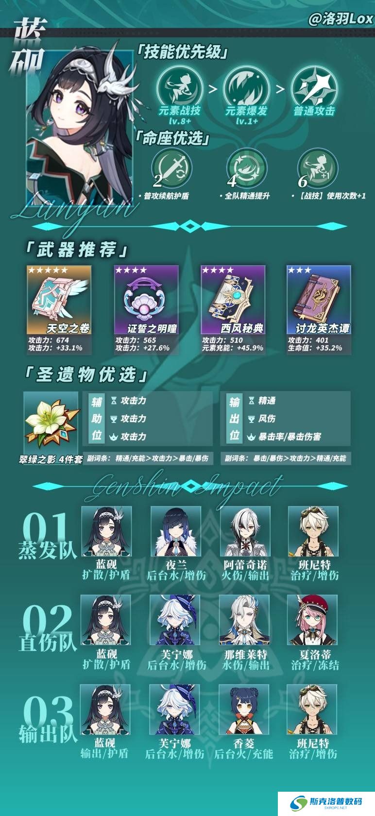 原神蓝砚养成一览表-蓝砚武器与圣遗物是什么