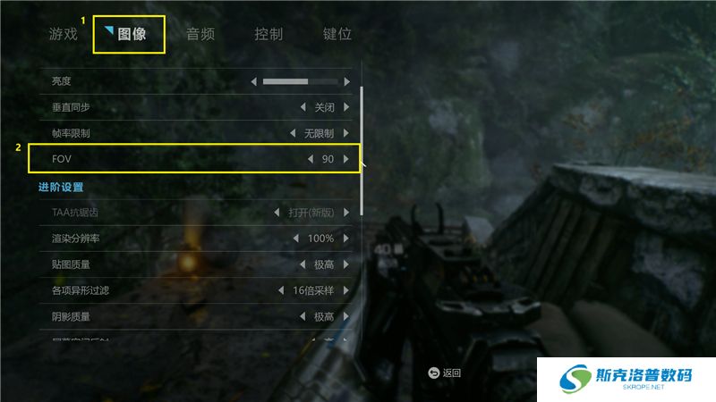 首先玩家进入游戏设置,在上方找到图像,在FOV(Field of View)一览调整数值,如下: