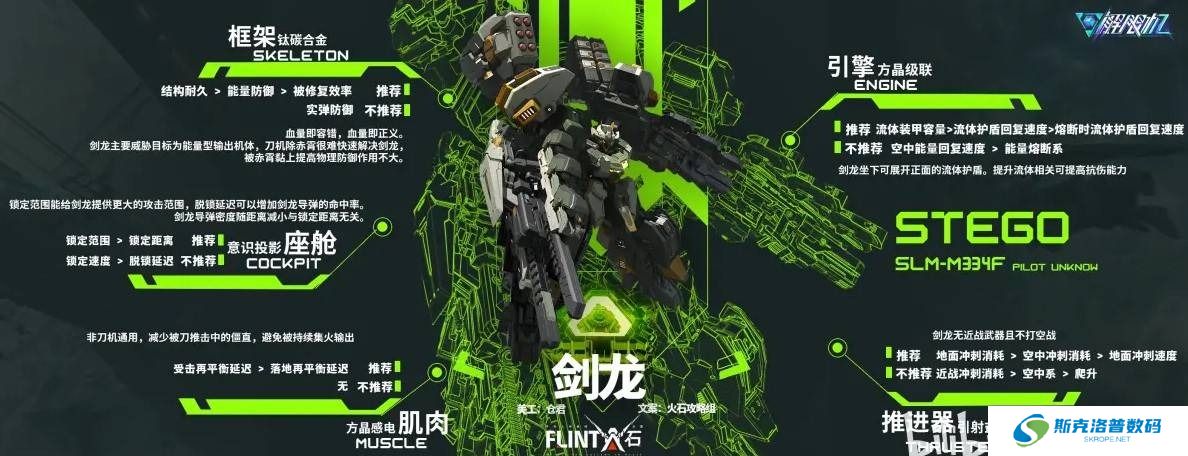 剑龙与三角龙在配件选择上有相似之处,因为它们都有两层超厚的流体装甲,所以配件搭配上可以围绕这一点进行。