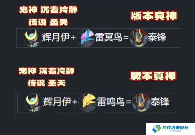辉月伊【鬼神、沉着冷静、传说、圣天】+雷鸣鸟=泰锋(版本真神)
