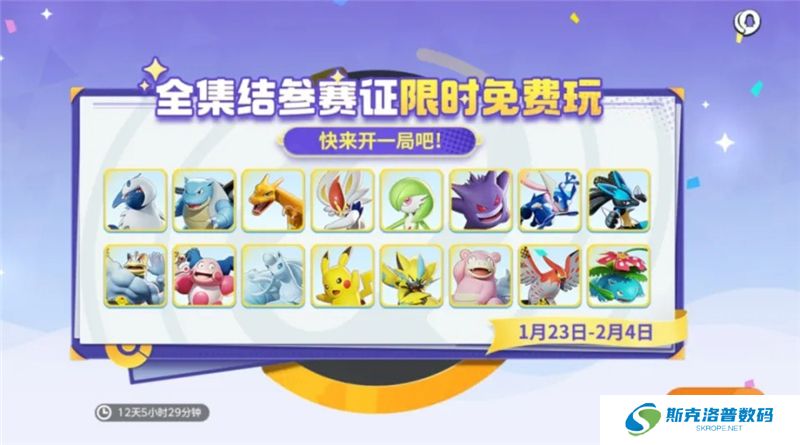 新春就要一起嗨!1月23日-2月4日,新春福利众多宝可梦参赛证限时免费体验!0门槛体验和更多宝可梦并肩作战,阵容更自由,速速约上好友畅快“上分”吧~