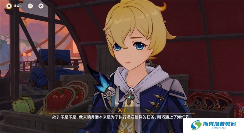 解锁海灯节活动后,传送到璃月港传送锚点,前往目标位置与米卡对话。