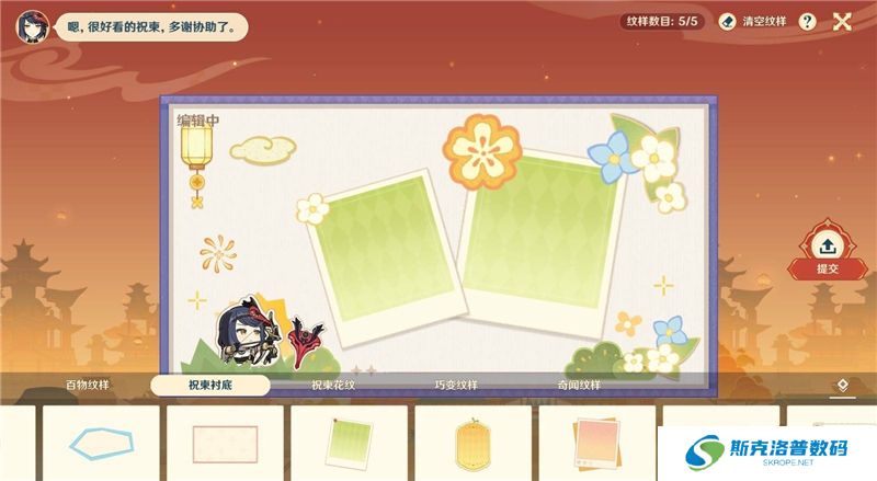 建议先通过寻找璃月港节庆道具来解锁一些新的纹样再制作,可选项会多一些。