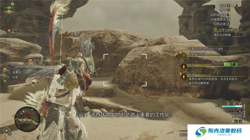 小虫子:直接丢网就行,操作上是非拔刀状态,点右键也就是集中模式,在鼠标中间投射,记得先装备上网。