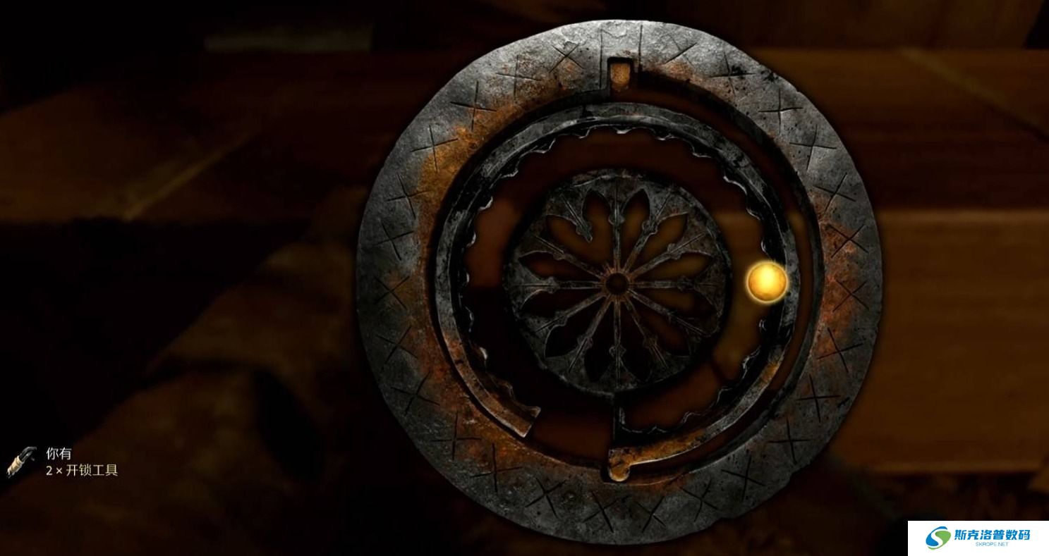 3、接着我们需要进行撬锁小游戏,将锁上的圆球进行移动,找到其发光的位置。
