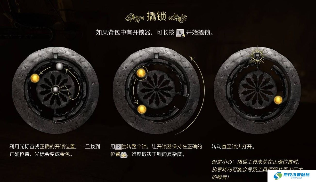 存档操作:在尝试撬锁前保存游戏,失败后可以读档重试。