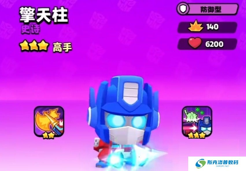 擎天柱在爆裂小队中是一名防御型角色,在团队中起到了坦克和治疗者的双重作用。