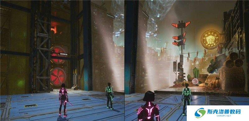 跟随主线任务推进,主线需要使用左侧升降梯才能继续前进,这里先不要上电梯,往右看可以看到这个支线任务气泡。在此支线任务中包含两个成就/奖杯【猪突猛进】、【吹呀吹呀吹】。