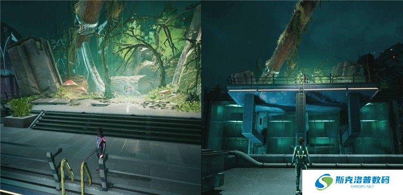 在此主线任务后期,需要跳过左侧的电线杆,参考下方截图,不用担心错过。先不要进行这一部分,走右侧小路,跳墙荡杆,即可看到支线任务气泡。