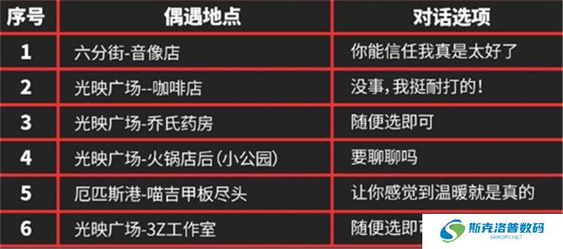 6、伊芙琳偶遇事件的正确对话选项,选择对的事件可以有效帮助提升伊芙琳的好感。