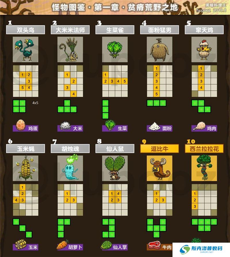 黑暗料理王中的怪物种类丰富多样,每种怪物都有其独特的特性和产出材料。