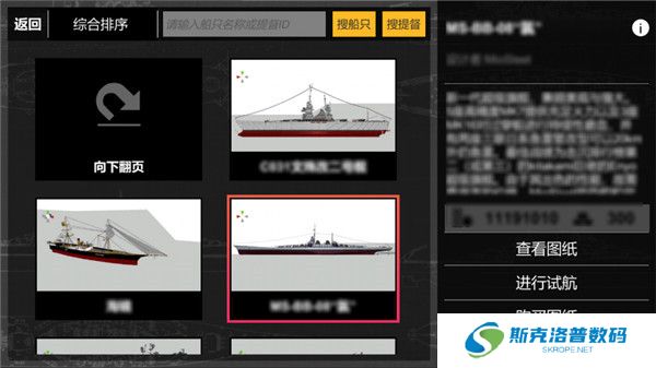 2.选定图纸后,您可以查看图纸或进行试航。通过购买图纸和获取授权两种方式来获得战舰。购买图纸和改装权可以通过战略物资进行,而授权则需消耗资源点并开始建造。