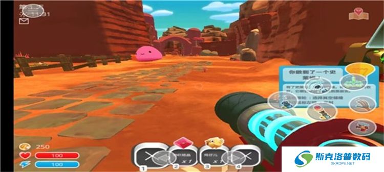 4、在地图上找到史莱姆,并点击右侧收集按钮将其吸入武器中。