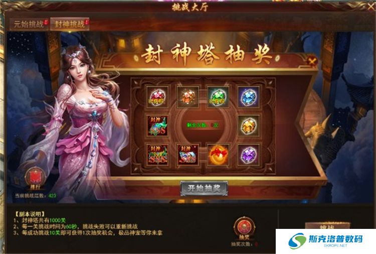 封神塔:封神塔共有1000层,每10层可获得一次抽奖机会,奖励包括宝石、神宠蛋和封神装备。