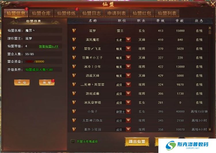 仙盟功能:加入仙盟后,玩家可以参与仙盟修炼、进行装备存取,并且可以发送红包给其他盟友。
