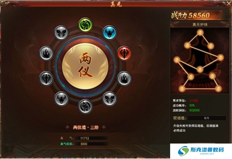 升级概率:真元的升级有一定的成功概率,若升级失败,则会获得祝福值。祝福值满后,升级必定成功。