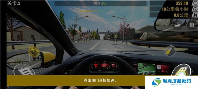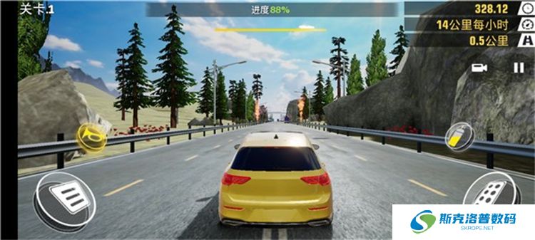 加速前进:进入游戏后,点击右侧油门即可开始极速狂飙,体验驾驶快感。