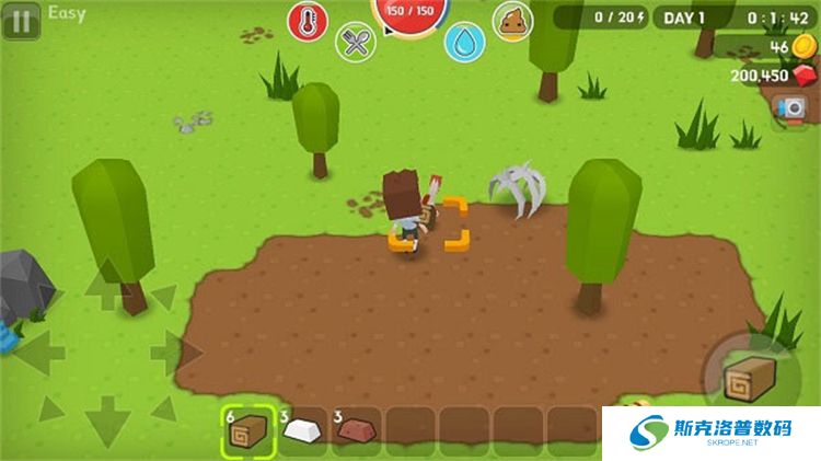 游戏开始时,你需要采集基础资源,如木头、石头、煤炭等。最初没有武器,只能徒手收集。通过点击树木、石头、煤矿等对象,并长按“攻击”按钮,经过一段时间后即可获取到资源。