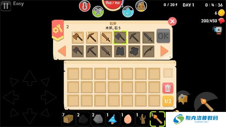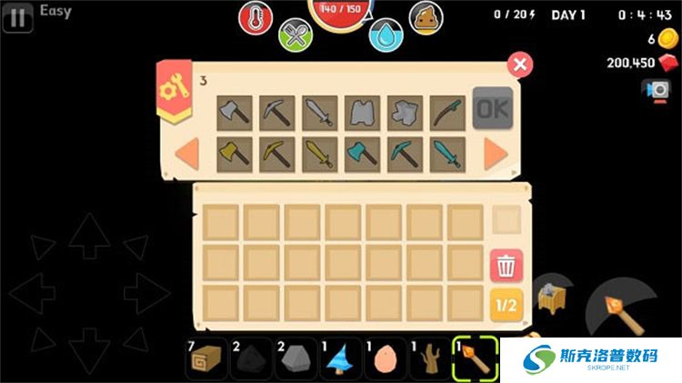 随着材料的收集,木剑、木斧、木镐等工具可以逐步升级为石制、铁制、银制、金制甚至钻石制的装备。通过这些装备,你不仅能提高战斗力,还能加快采集效率。